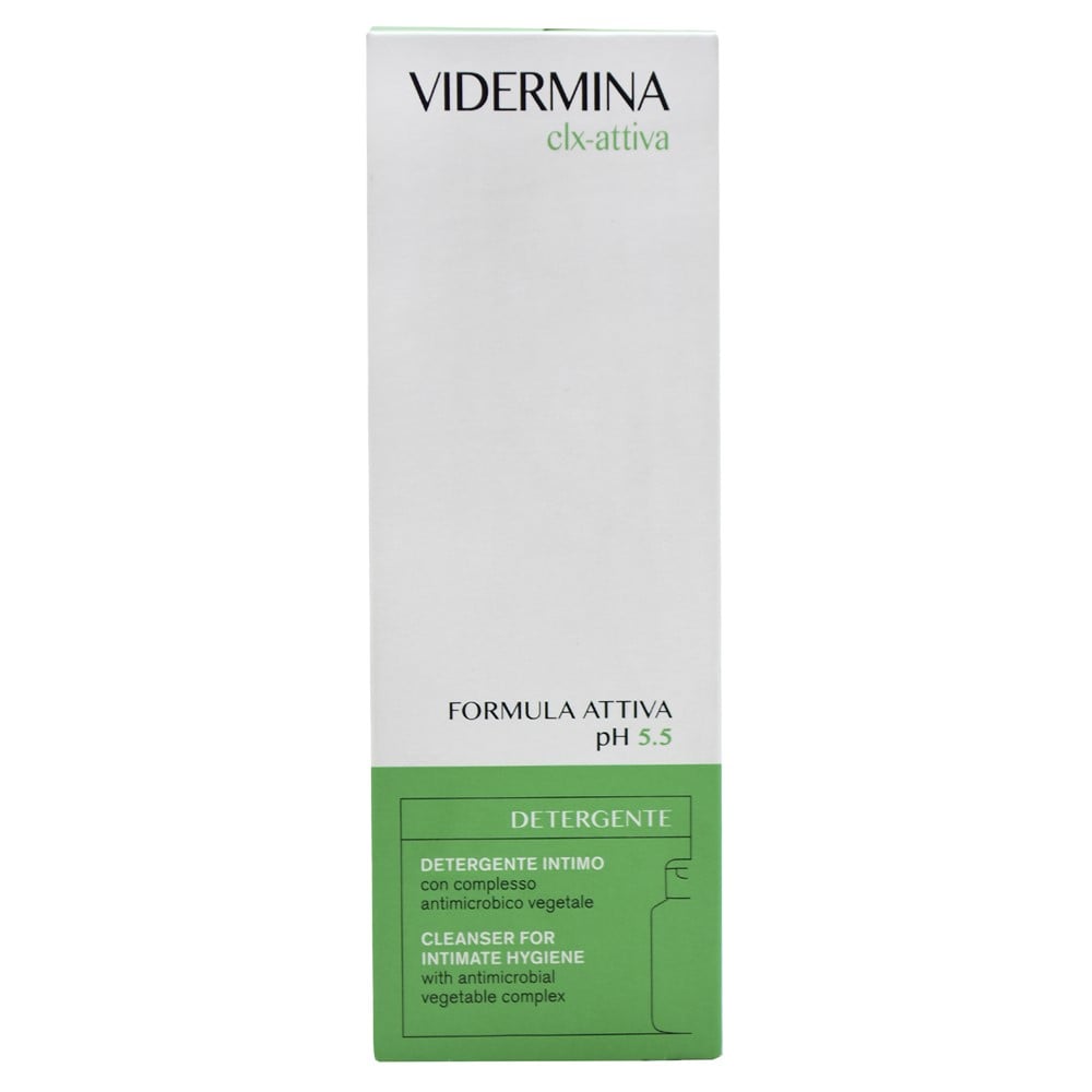 Vidermina CLX Cleanser është një pastrues i lëngshëm për higjienën e zonës së ndjeshme, me veprim të butë antimikrobik dhe pH paksa acid 5.5. Ky pastrues është i përshtatshëm në të gjitha rastet e rritjes së tepërt të mikroflorës vaginale dhe/ose pezmatimit të vaginës. Përmban klorheksidinë (0,1%), acid laktik dhe ekstrakte bimore të trumzës, nenexhikut, rigonit, centaurit, rozmarinës dhe calendulës, të cilat mbrojnë zonën e ndjeshme dhe florën e lëkurës.