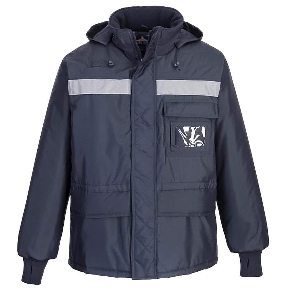 Portwest CS10 ColdStore Jacket, a pinnacle of innovation designed for those braving the extreme cold. This L size length freezer jacket is engineered to offer unrivalled protection against the chill, ensuring you stay warm and comfortable in the harshest conditions. Its heavy-duty two-way zipper enhances wearer flexibility, allowing for easy movement, while the extra-long knitted cuffs with thumb holes lock in warmth. For added safety in low visibility environments, the jacket is equipped with reflective tape around the chest and back.