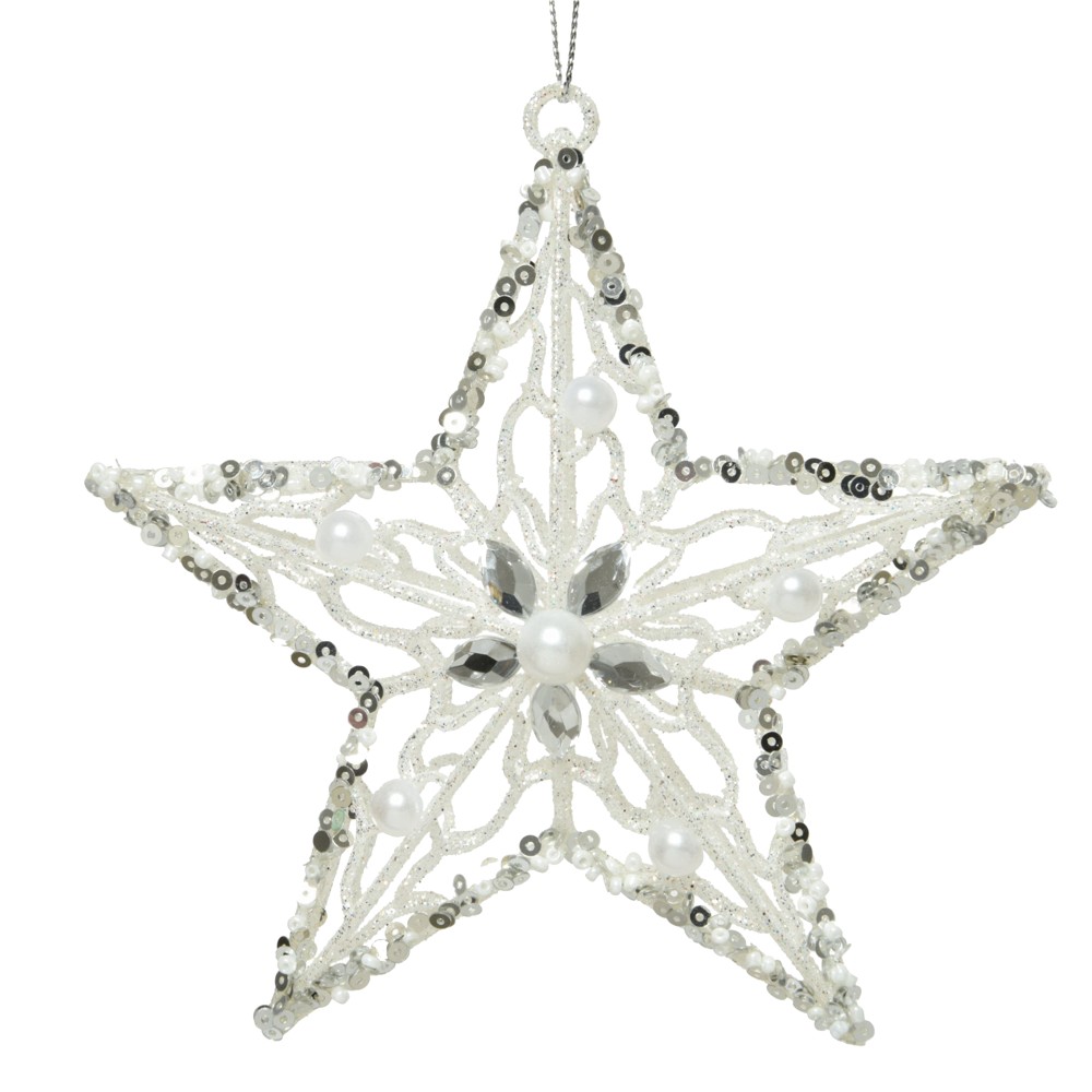 Po vlerësoni:Yll dekorues me varje, plastike, e bardhë, 13x5 cm
