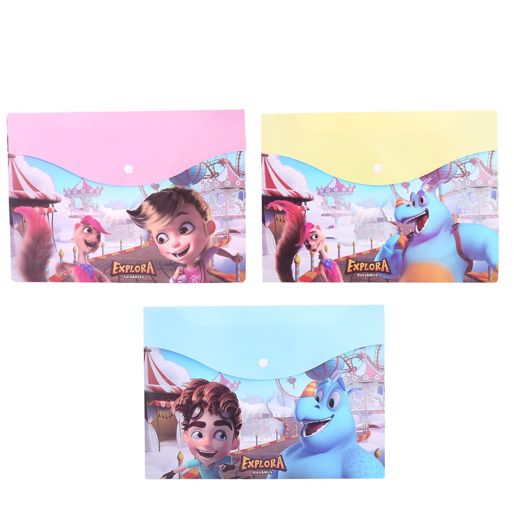 Dosje në formë zarfi, me buton dhe me figura të ndryshme të filmave vizatimor. I përshtatshëm kur transportoni dokumente si dhe për ti ruajtur ato.