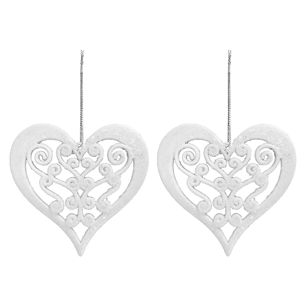 Zemër dekoruese, 2 copë, 10 cm, (e bardhë), PVC