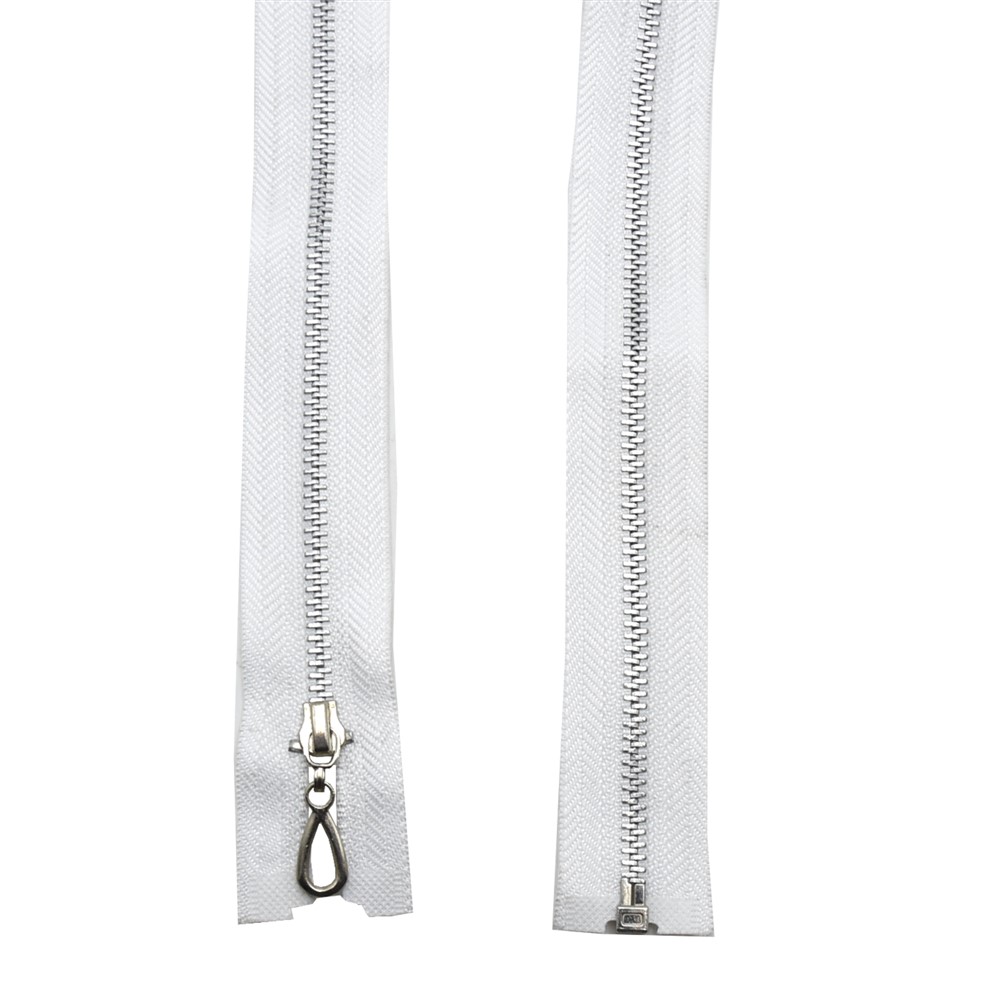 Zinxhir për veshje të ndryshme, prej materiali metalik dhe poliestre, me gjatësi 60 cm, në ngjyrë të bardhë. Përdoret për t'u qepur në rroba të ndryshme dhe është i përshtatshëm për t'u përdorur nga rrobaqepësit dhe stiluesit.